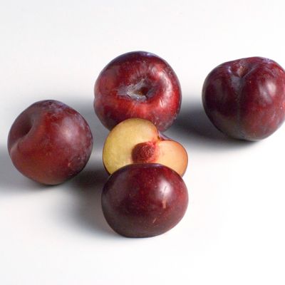 Questa varietà di susine ha una forma rotonda con una pelle di colore violaceo.
